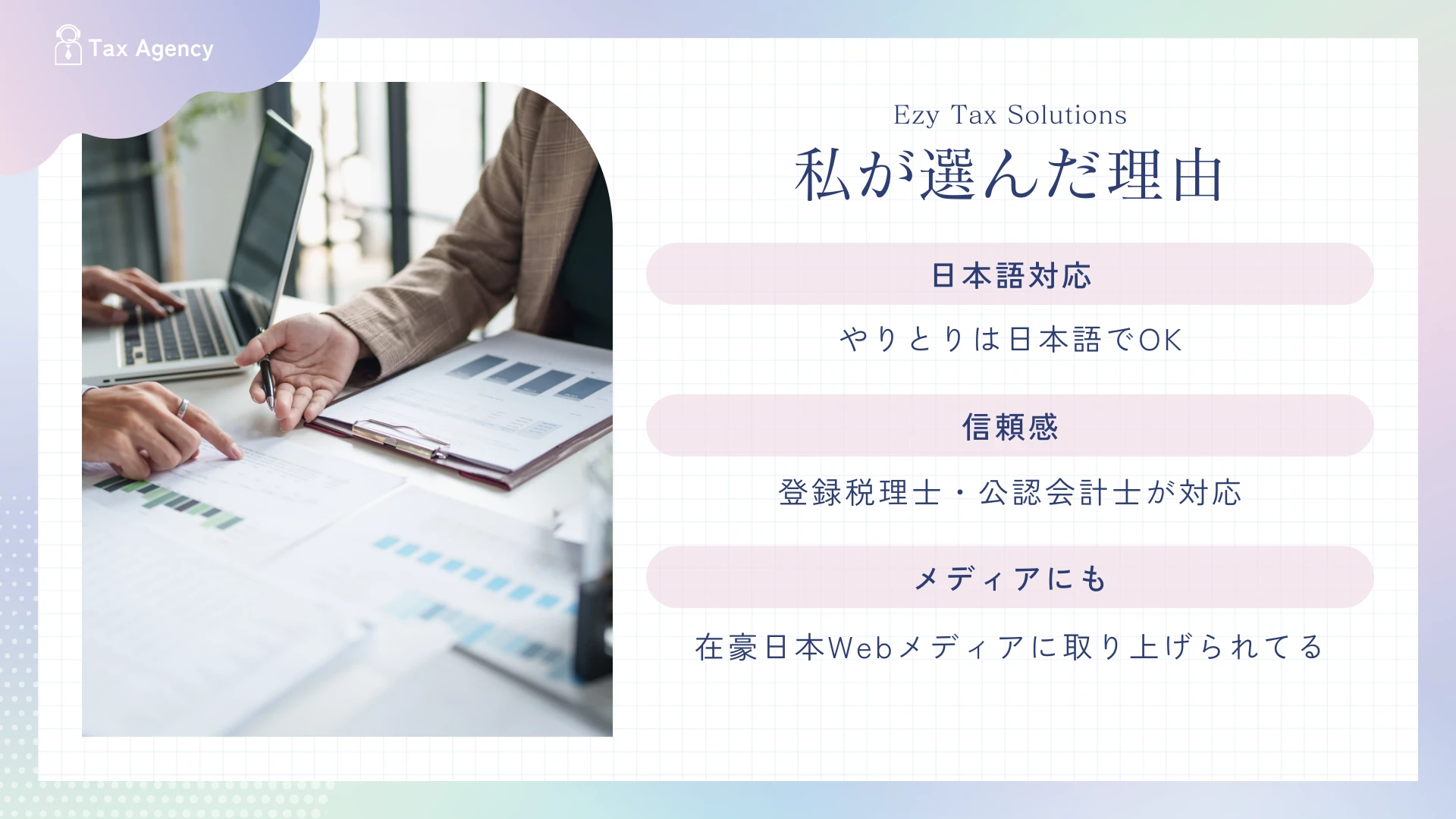 Ezy Tax Solutionsへ依頼すれば、手続きは日本語で完結します。
