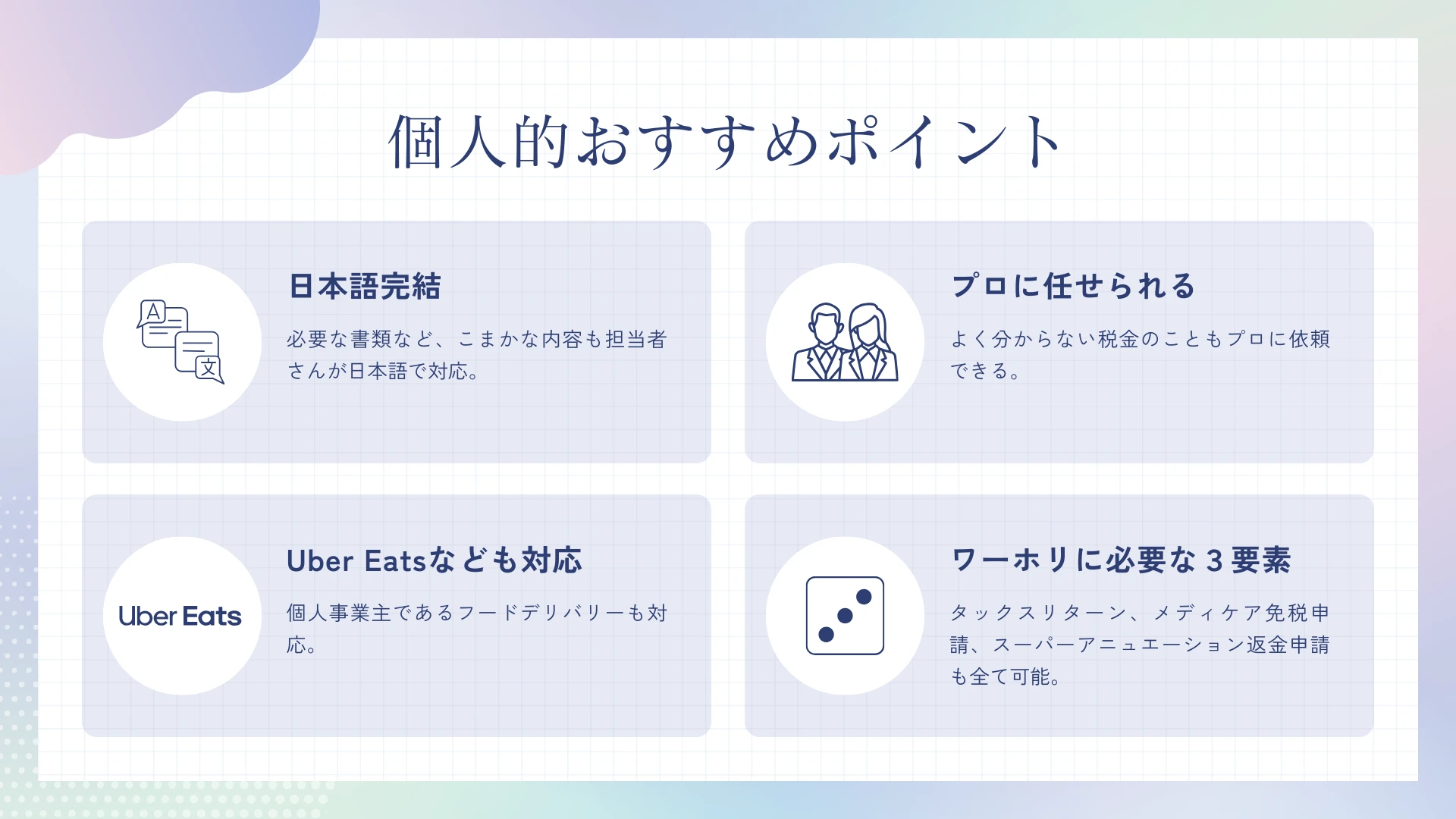 Ezy Tax Solutionsが、ワーホリにおすすめなポイントを独自に紹介します。