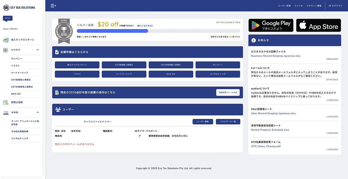 Ezy Tax Solutionsにはスマホアプリもあります。