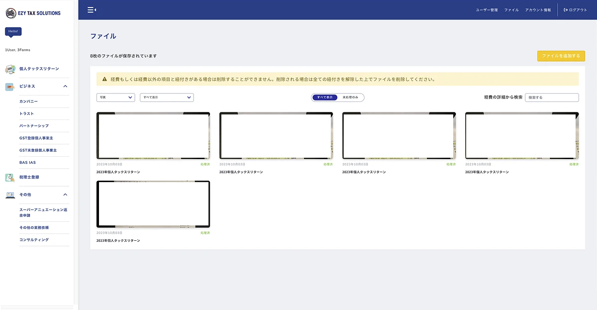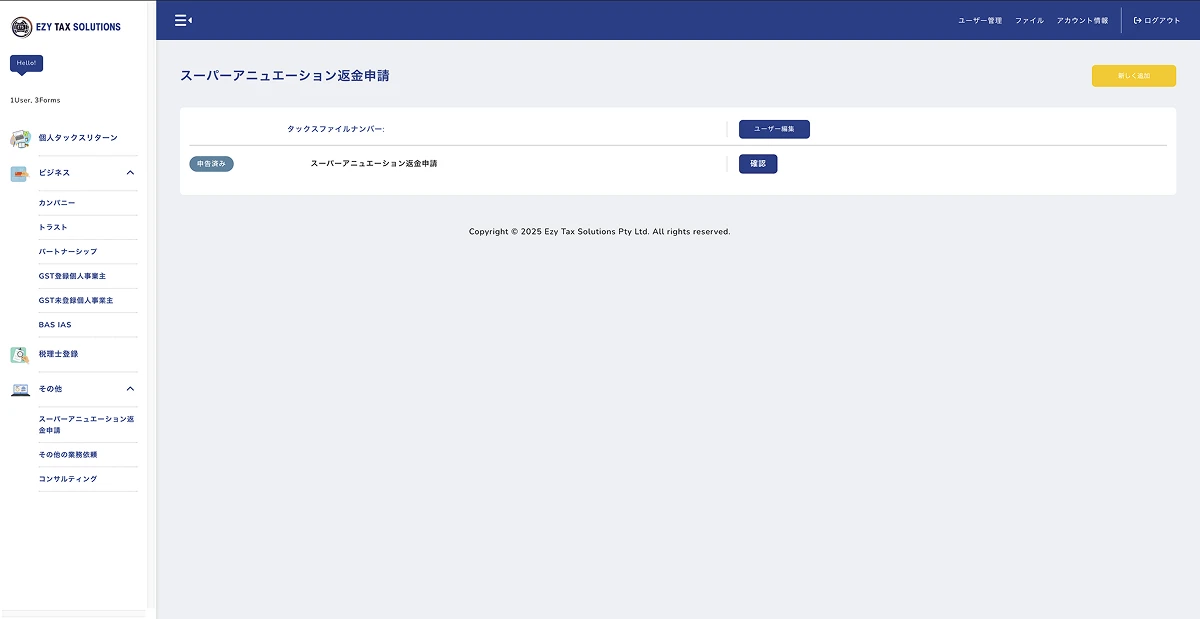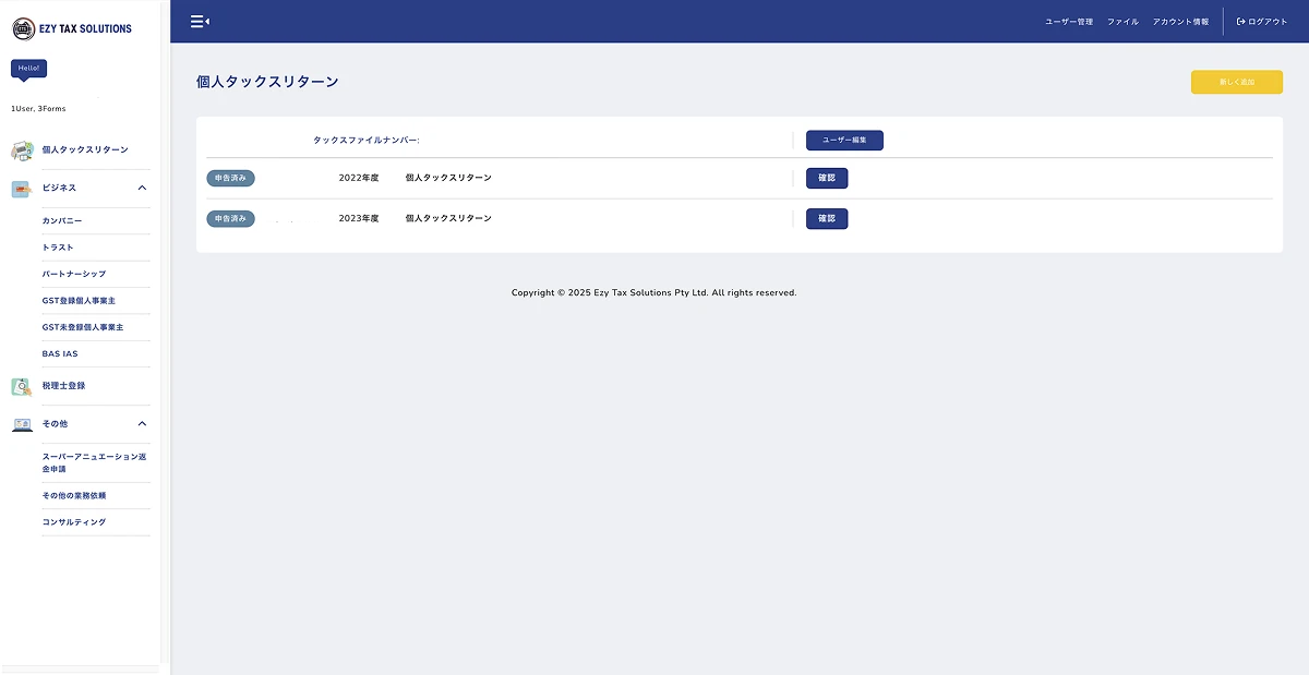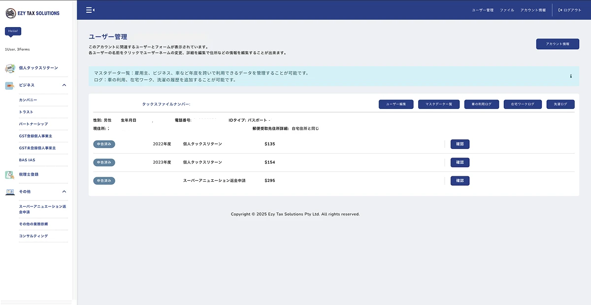 Ezy Tax Solutionsのポータルサイトの管理ページがめっちゃ使いやすいです。