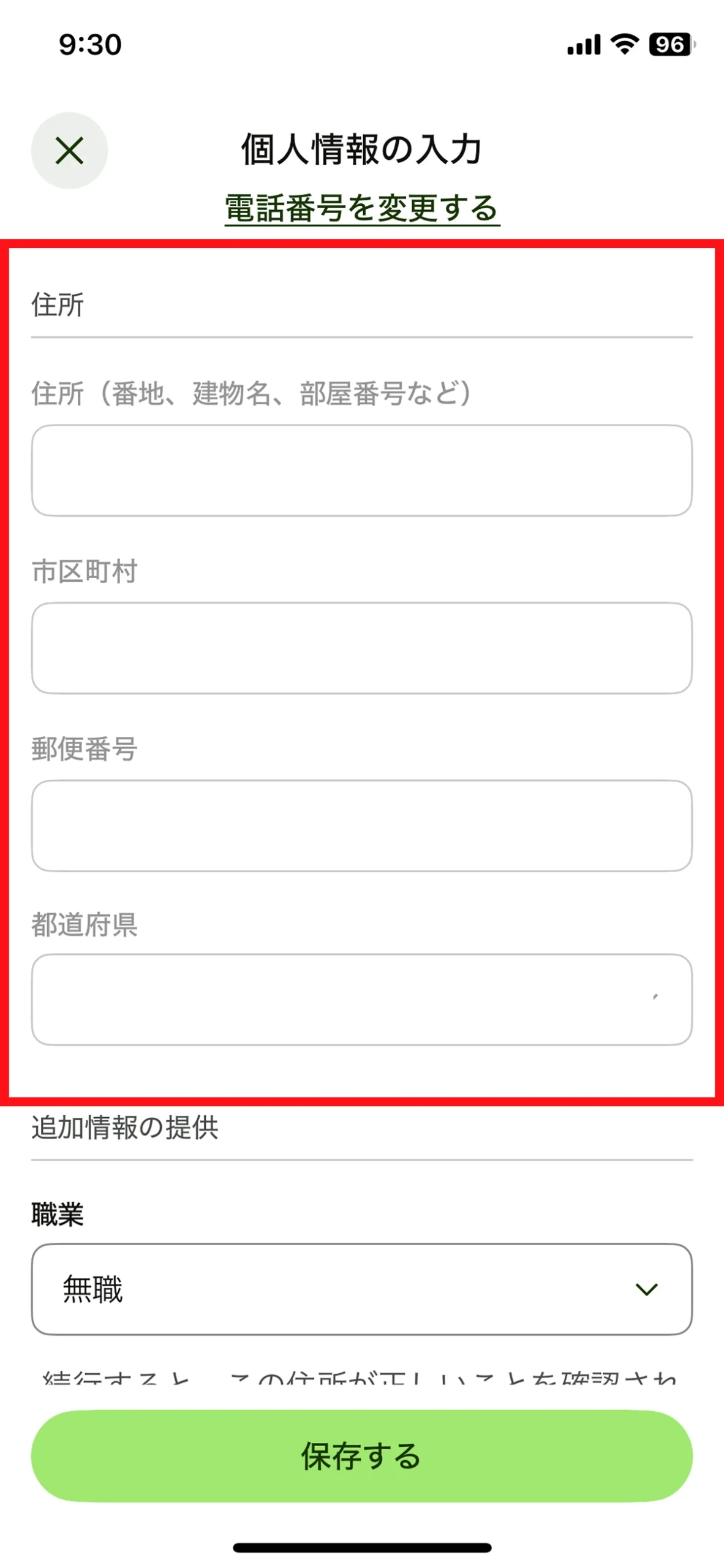 - 住所変更の際に、メールで提出する情報は「新しい住所」「職業」「有効な書類」